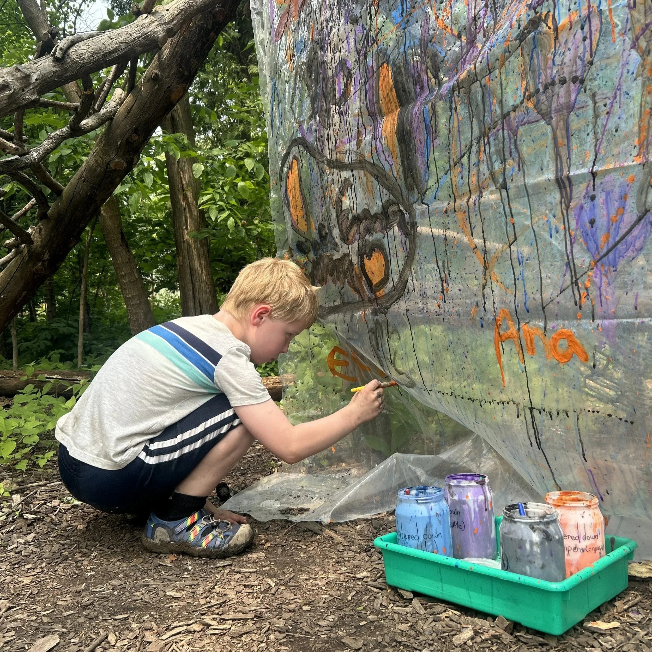 Your camper will have a blast in this art edition of Dirty, Messy, Awesome! Bring your creativity and have fun making art and music this week. We will be painting, drawing, sculpting, building, weaving, and even making art with bubbles! In addition to all the fun, we will play games, hike, and explore the natural world around us.